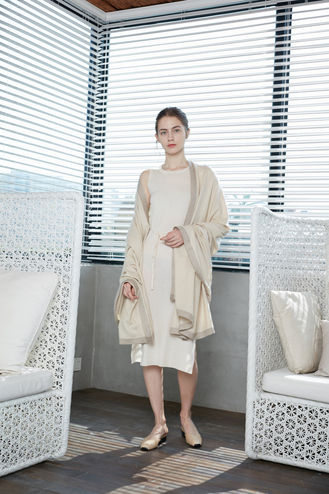 Indulge in ultimate comfort with our exquisite cashmere and yak wool blend robe, adorned with...