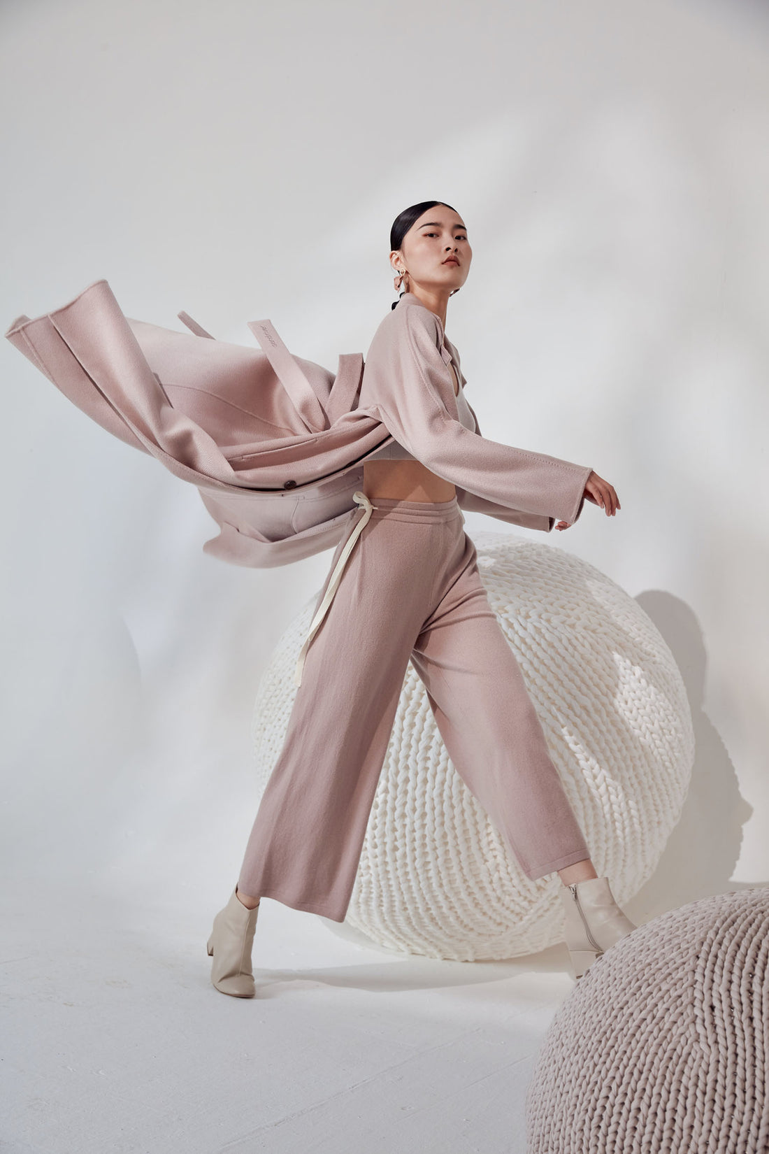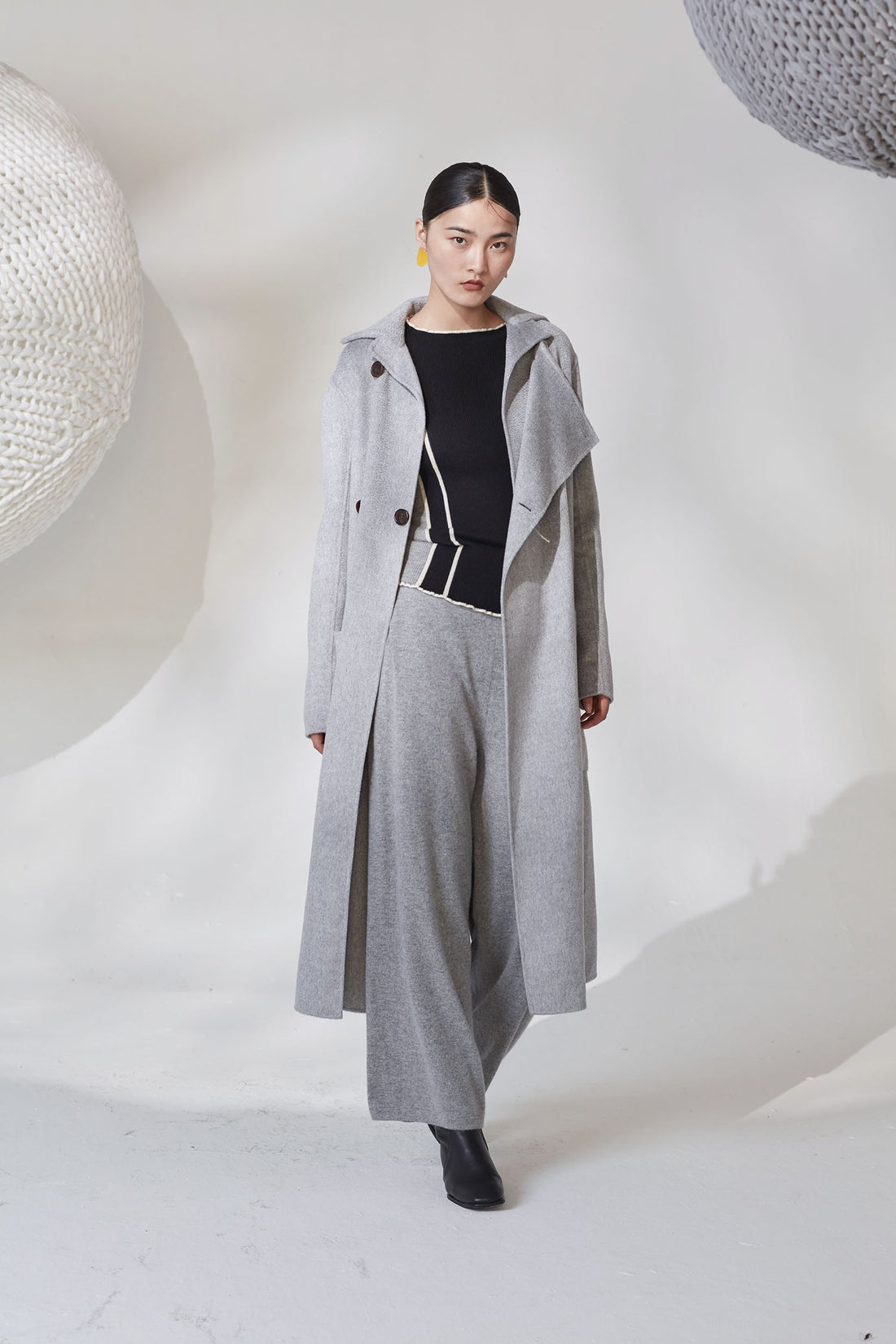 Double-breasted trench coat crafted from pure cashmere. Styled with lapels and collar with high splits...