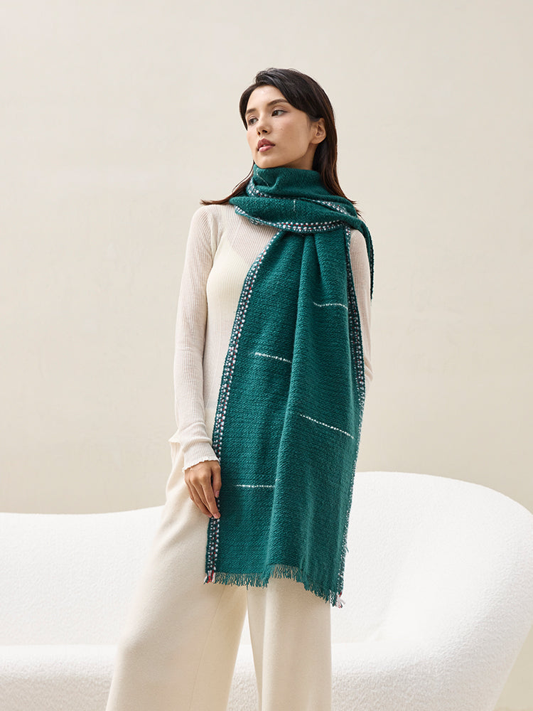 Through traditional Pulu craftsmanship, a 2000-years-old tech, the fabric achieves a lightweight yet resilient texture. The hand-twisted cashmere yarn creates a natural surface texture, delivering a warm and skin-friendly touch. Whether draped over the shoulders or laid across the knees, it offers a cloud-like comfort experience.