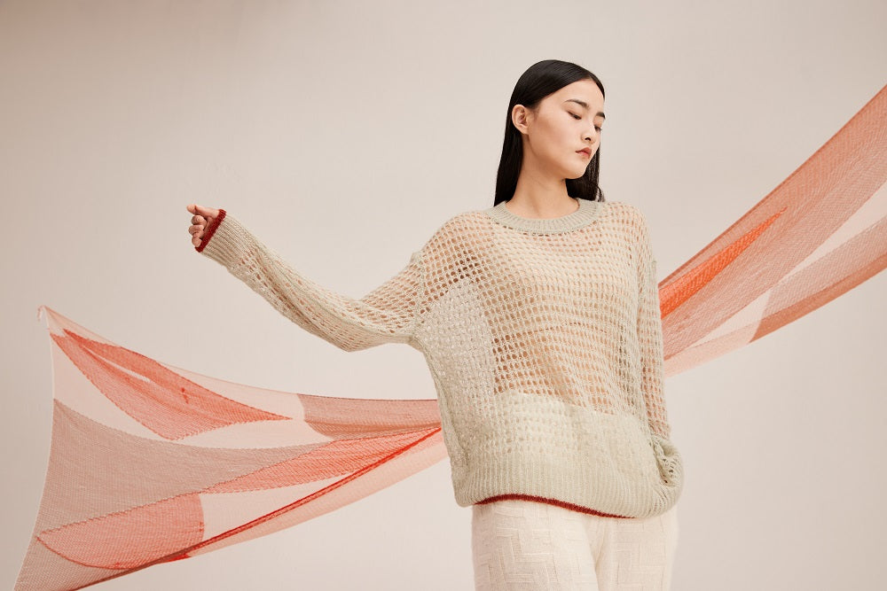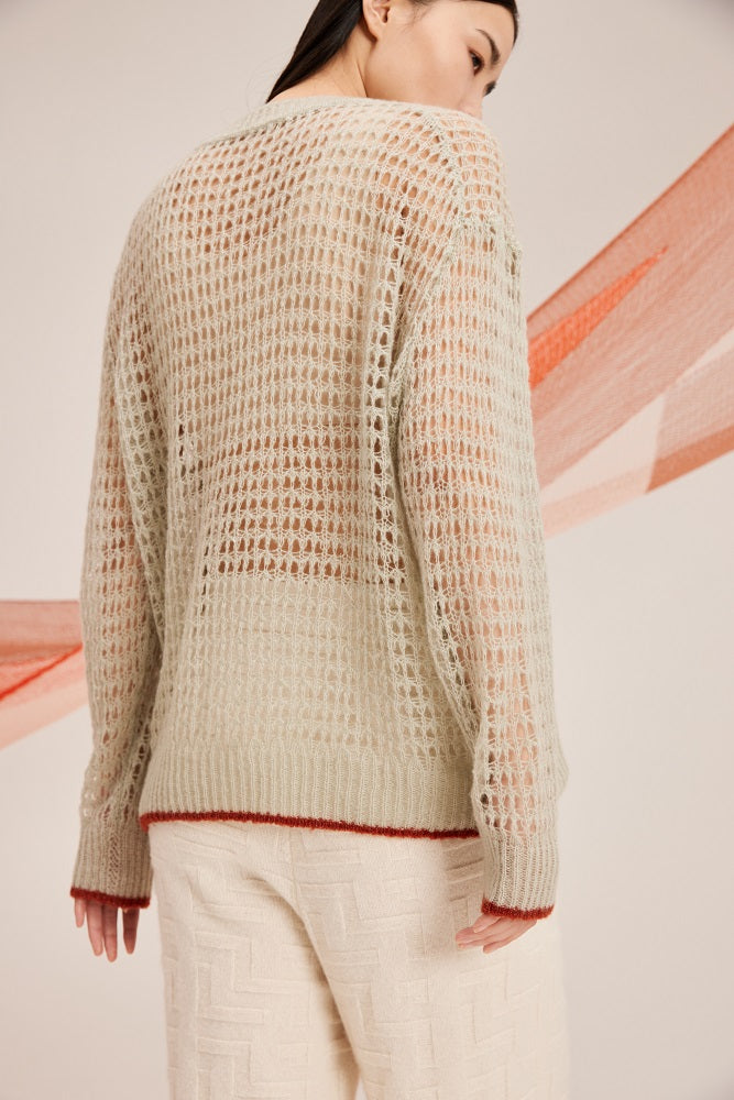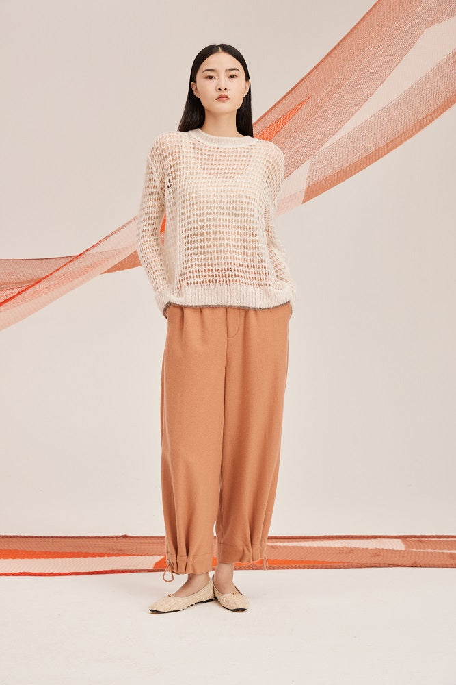 Drop shoulder sweater, it features pointelle construction garcefully embracing the body