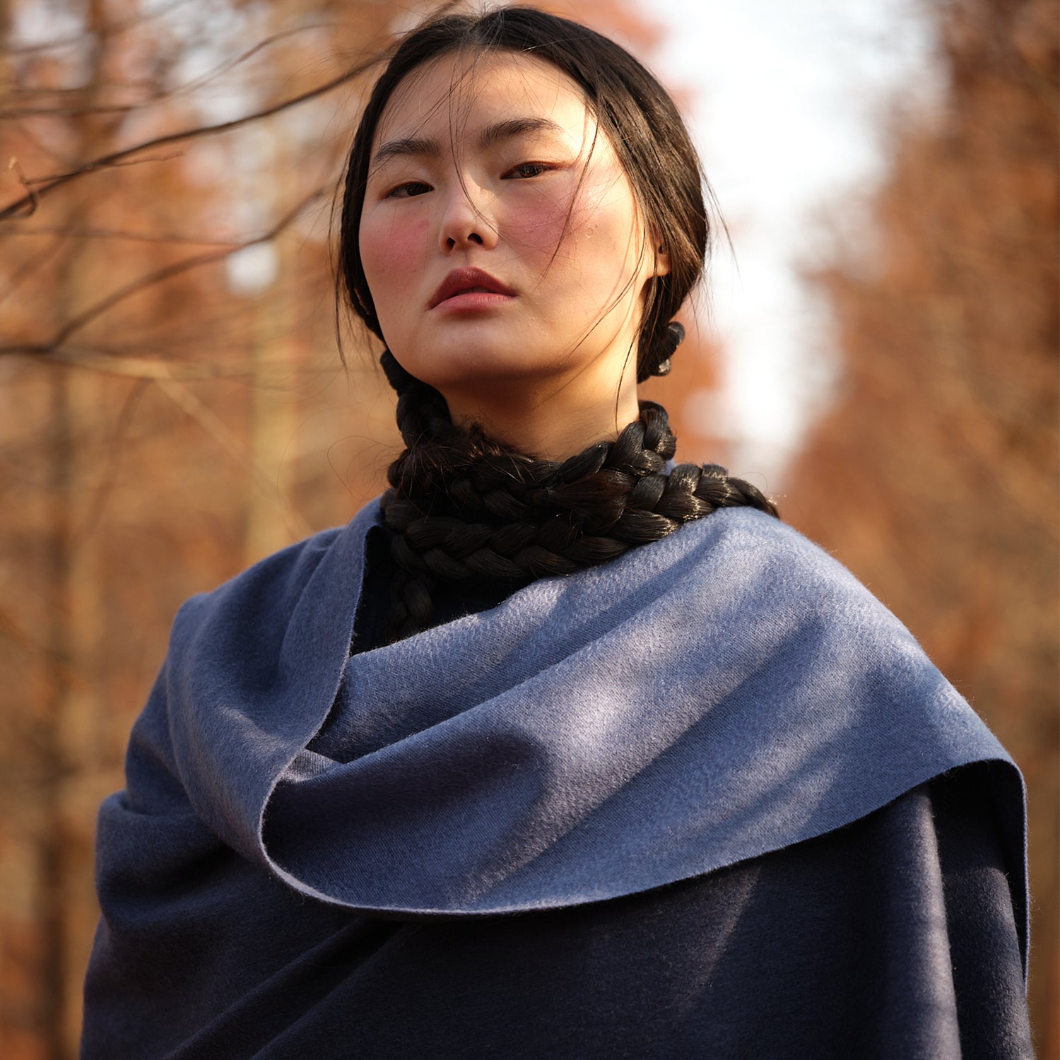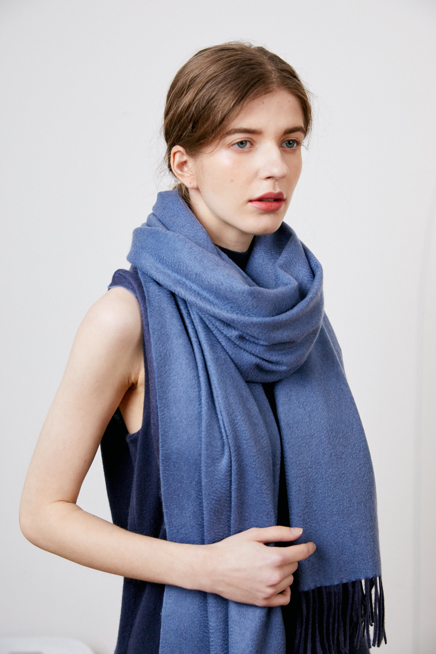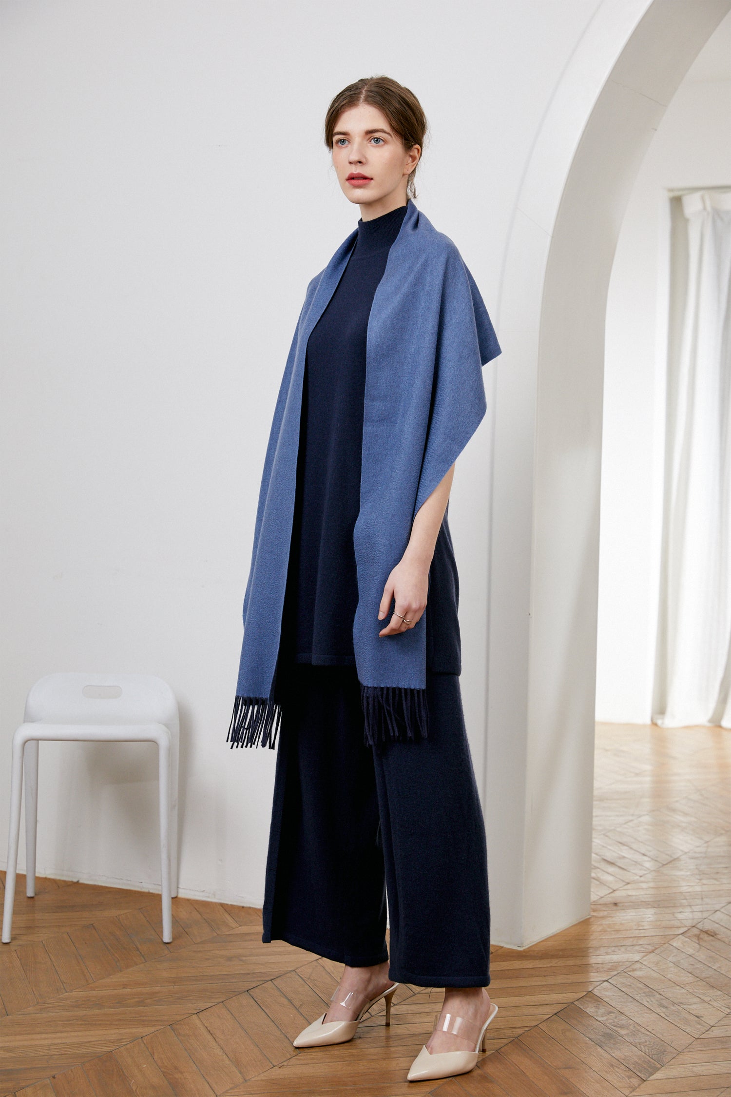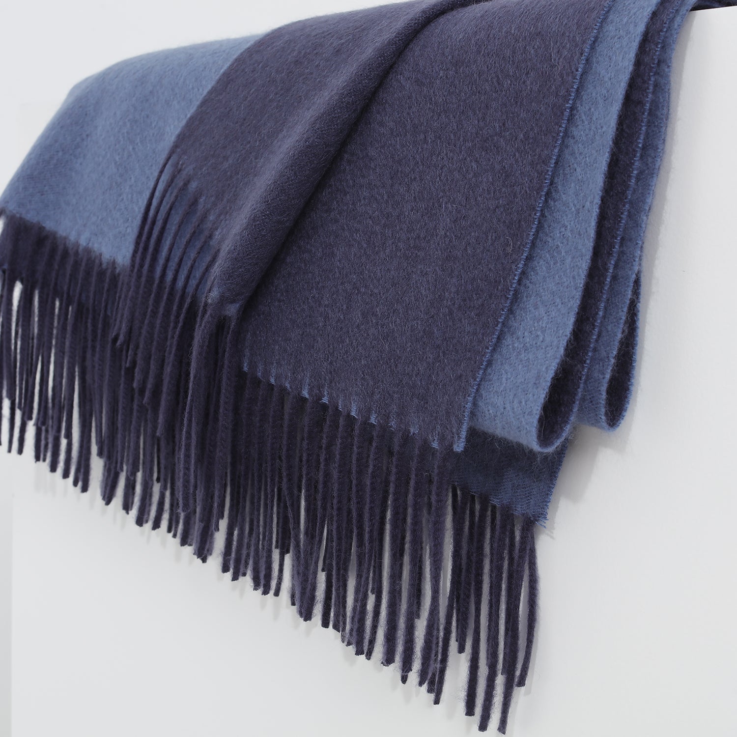Double-sided ripple cashmere fringy shawl/blanket made by 100% baby cashmere sourced from family-owned pasture in Inner Mongolia, extremely soft, it provides luxurious warmth to the home.