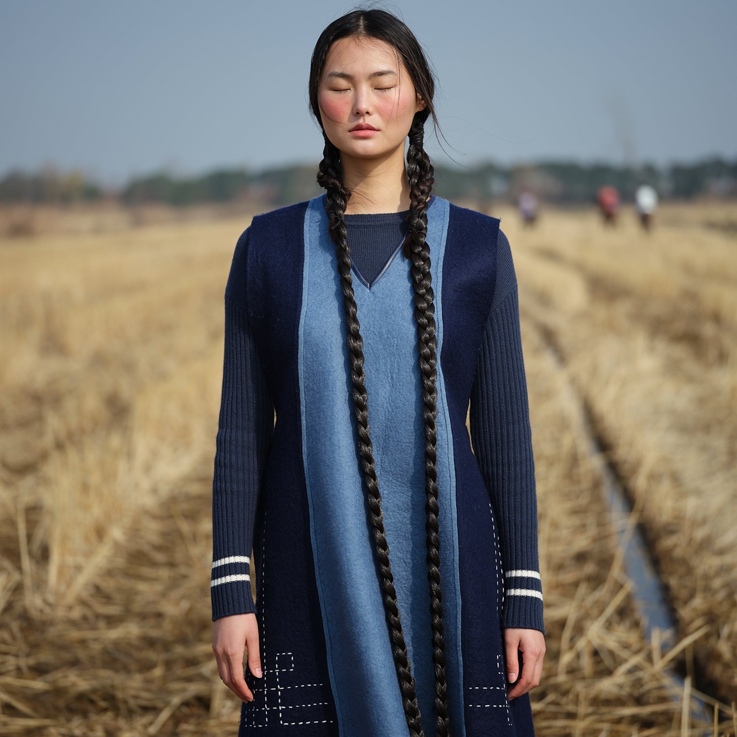 Cashmere felt dress in traditional felt craft production with modern design, it is a noble and exclusive piece.