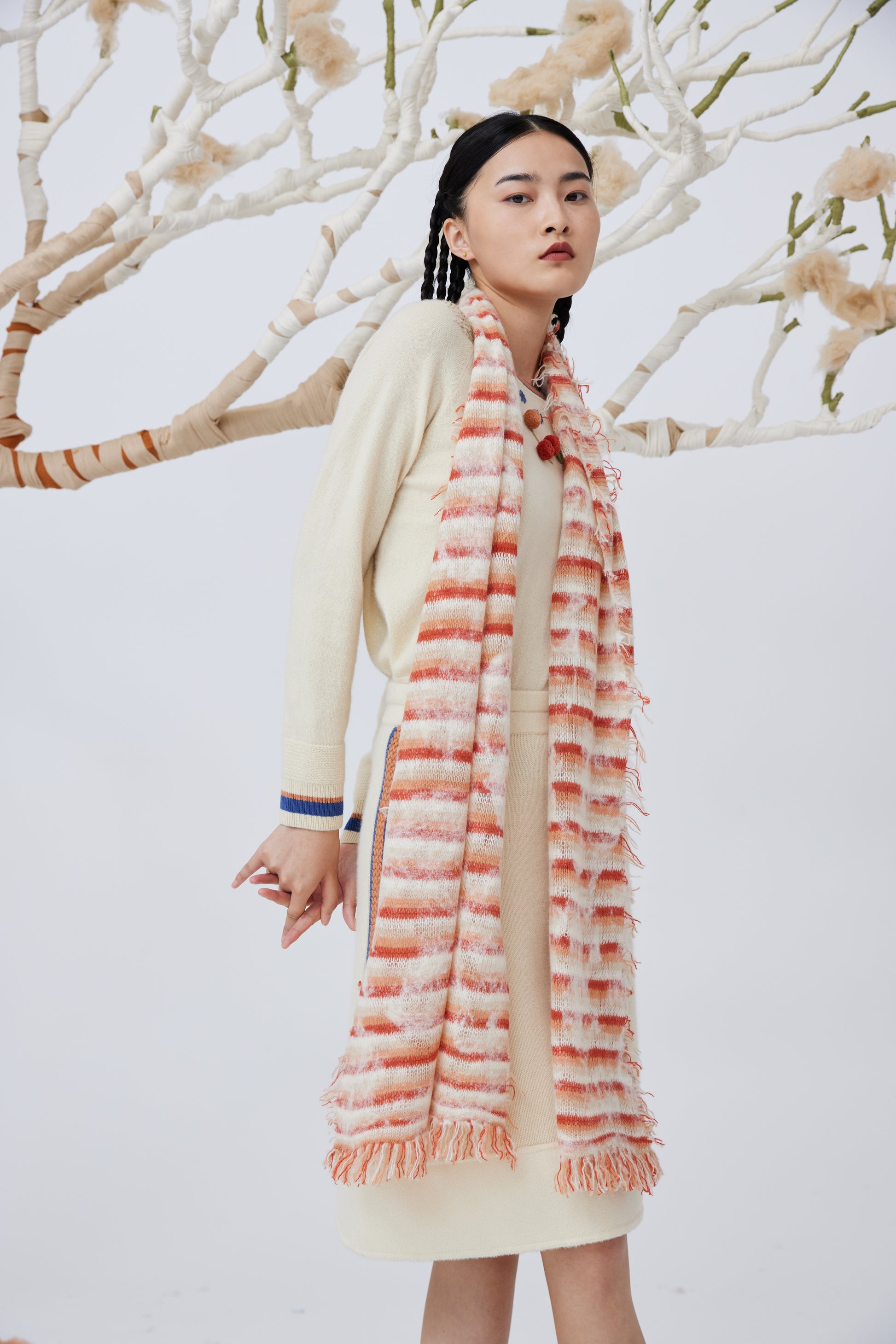 Handcrafted felting cashmere knitted scarf