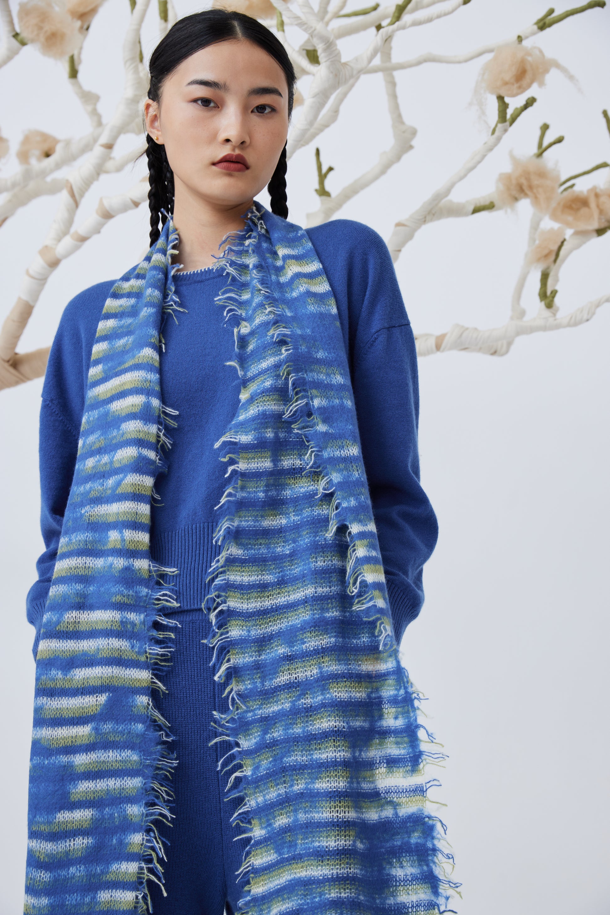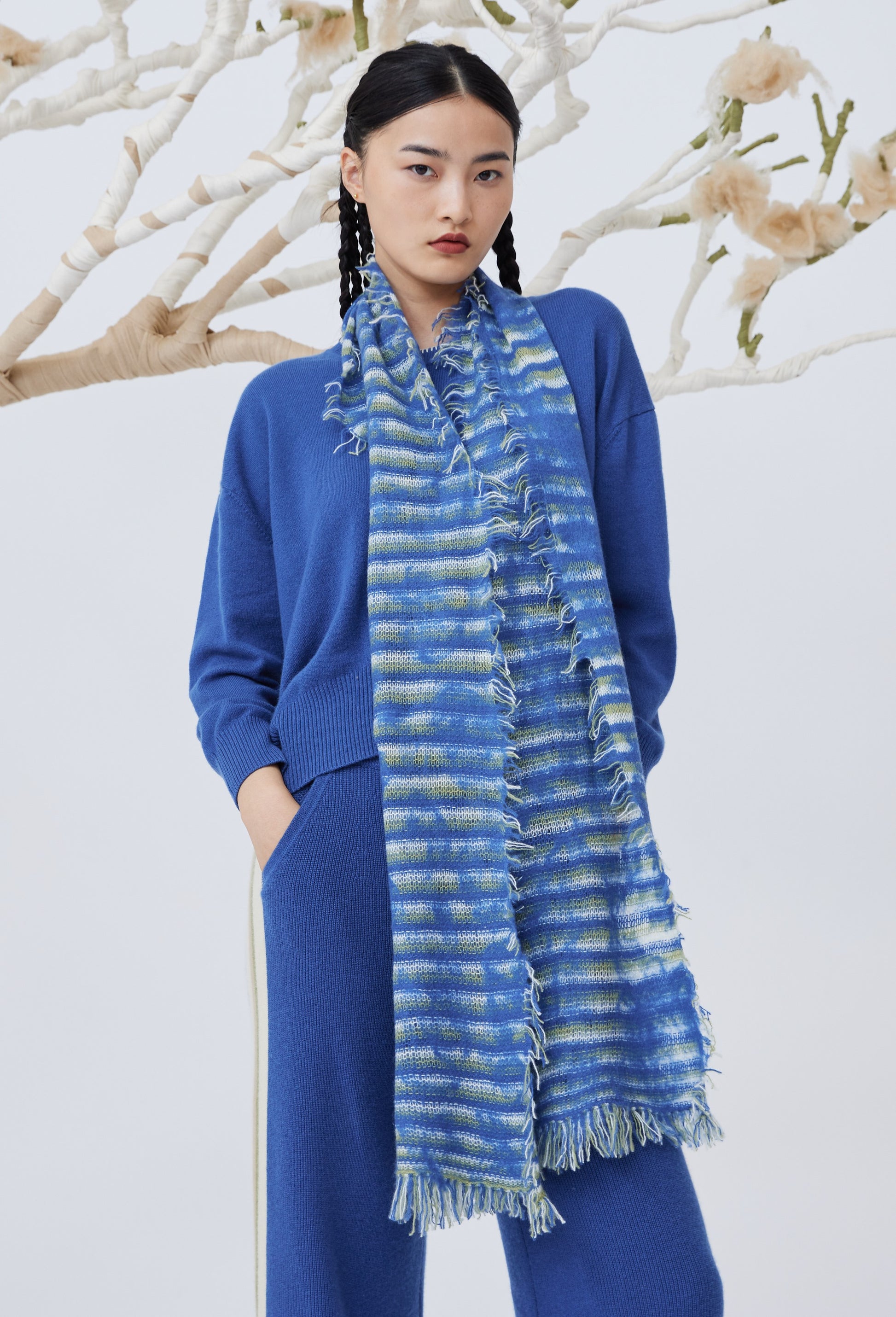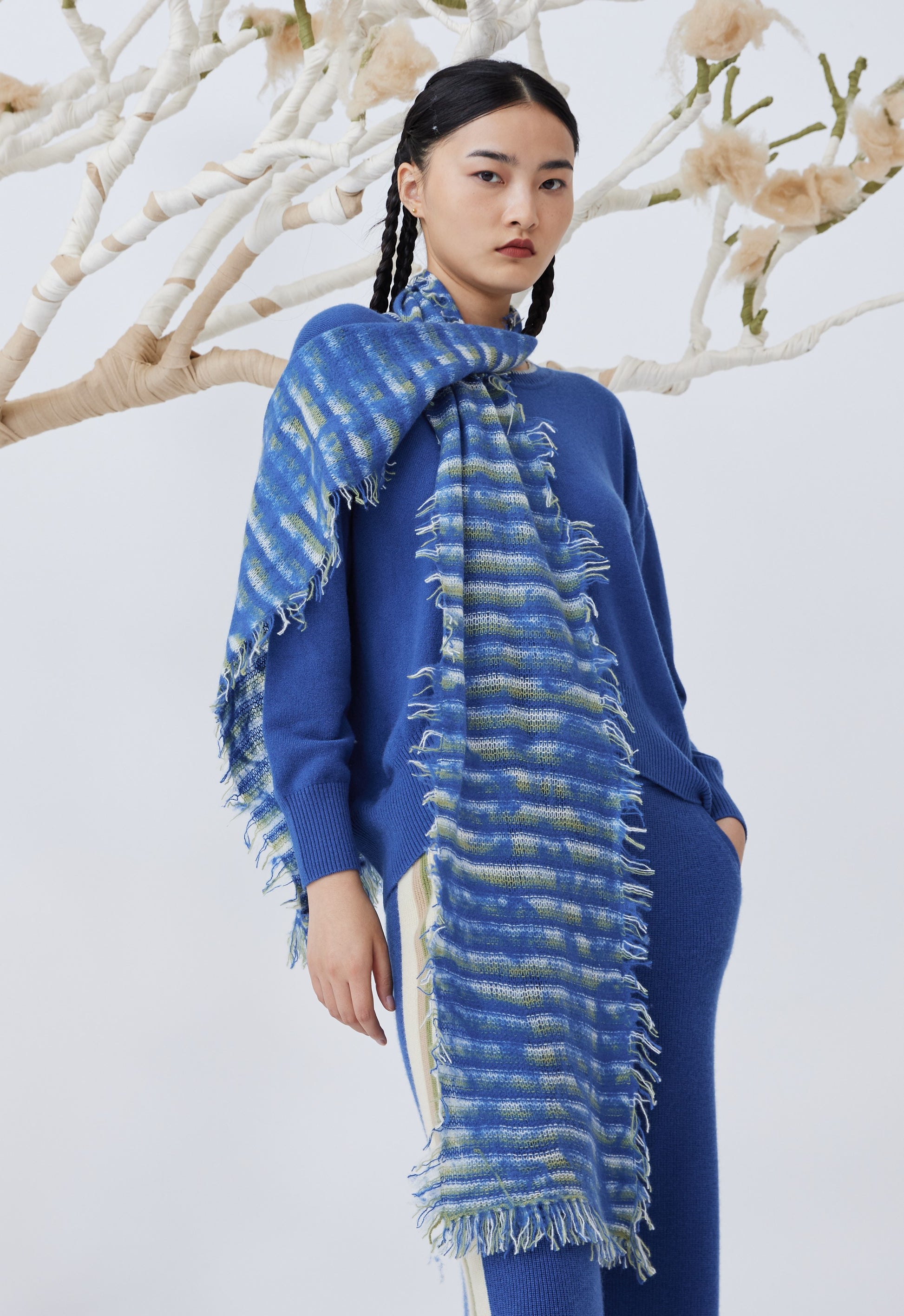 Handcrafted felting cashmere knitted scarf