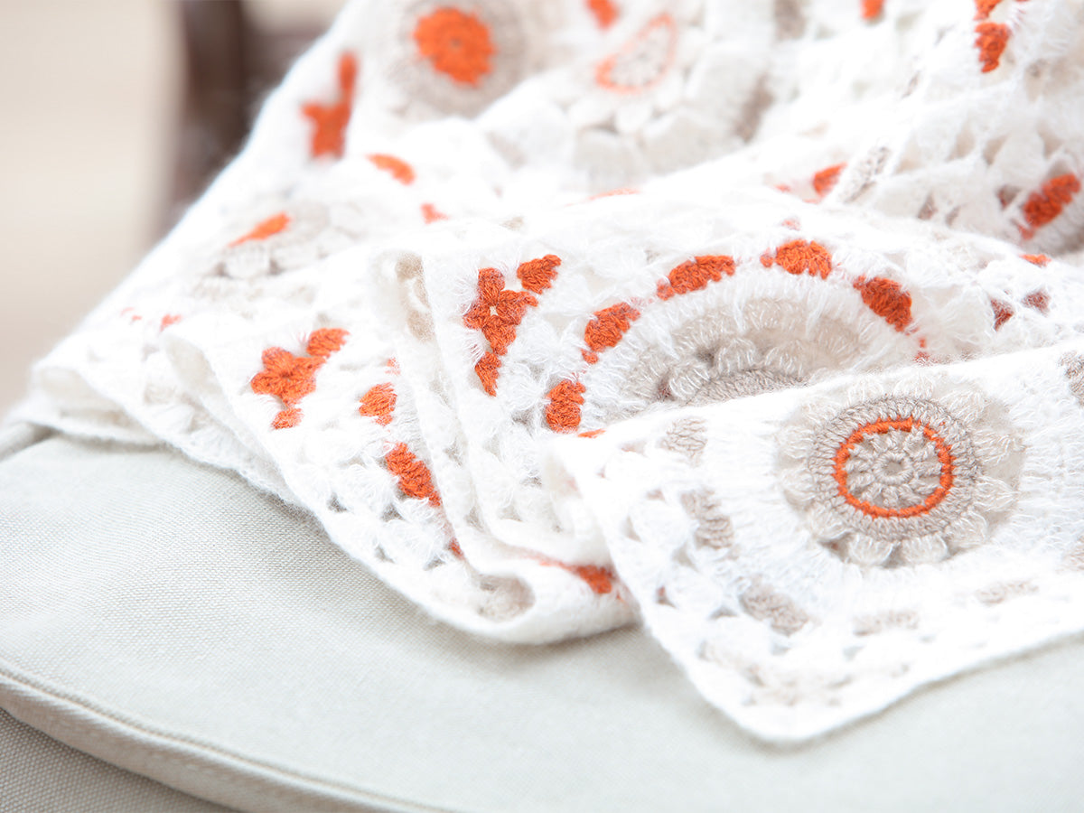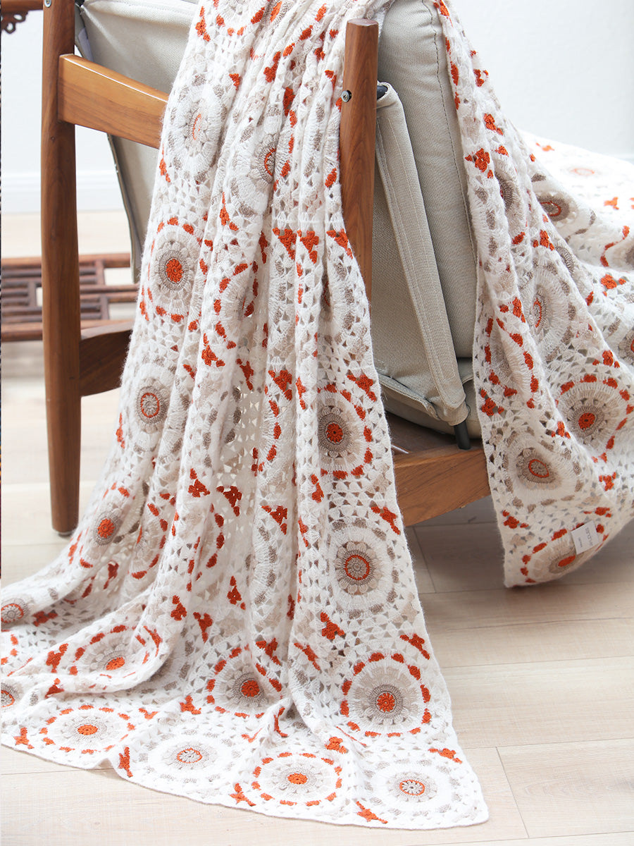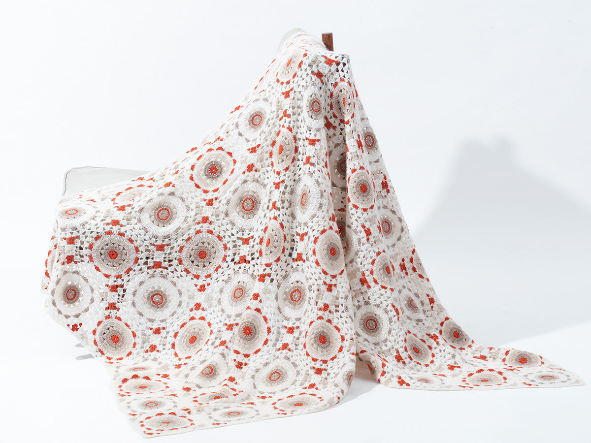 This exquisite, handmade blanket is meticulously crocheted from the softest cashmere and the most lustrous silk. The intricate crochet work creates a delicate and airy fabric that is both beautiful and functional.