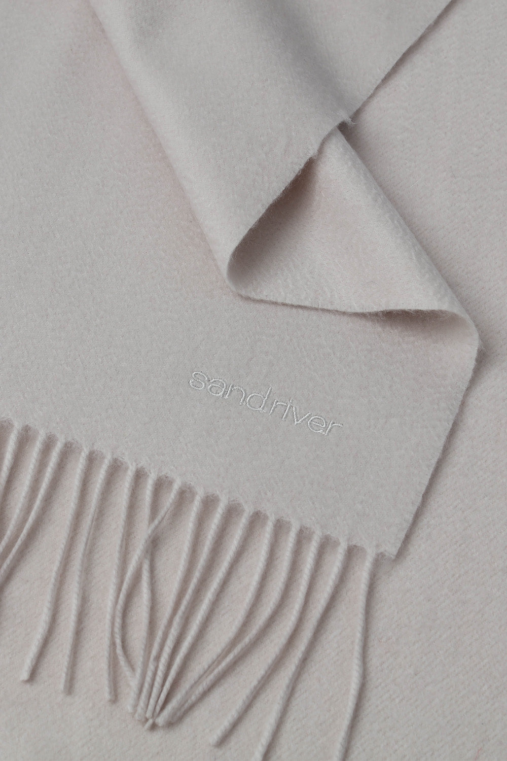 Fashioned in sumptuously-soft cashmere, this super large shawl/scarf is detailed with elegant water wave pattern, finished with a classic tassel trim.