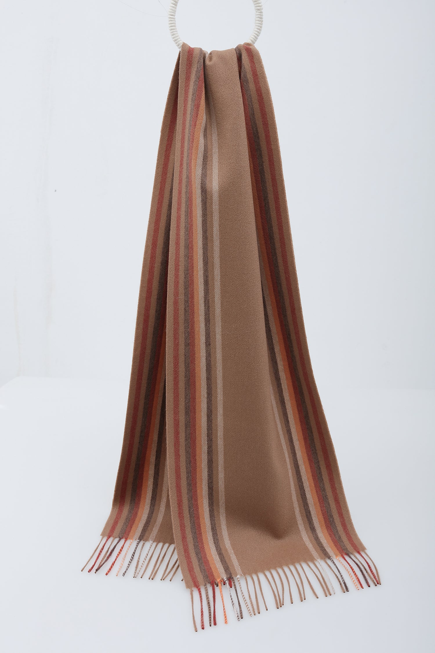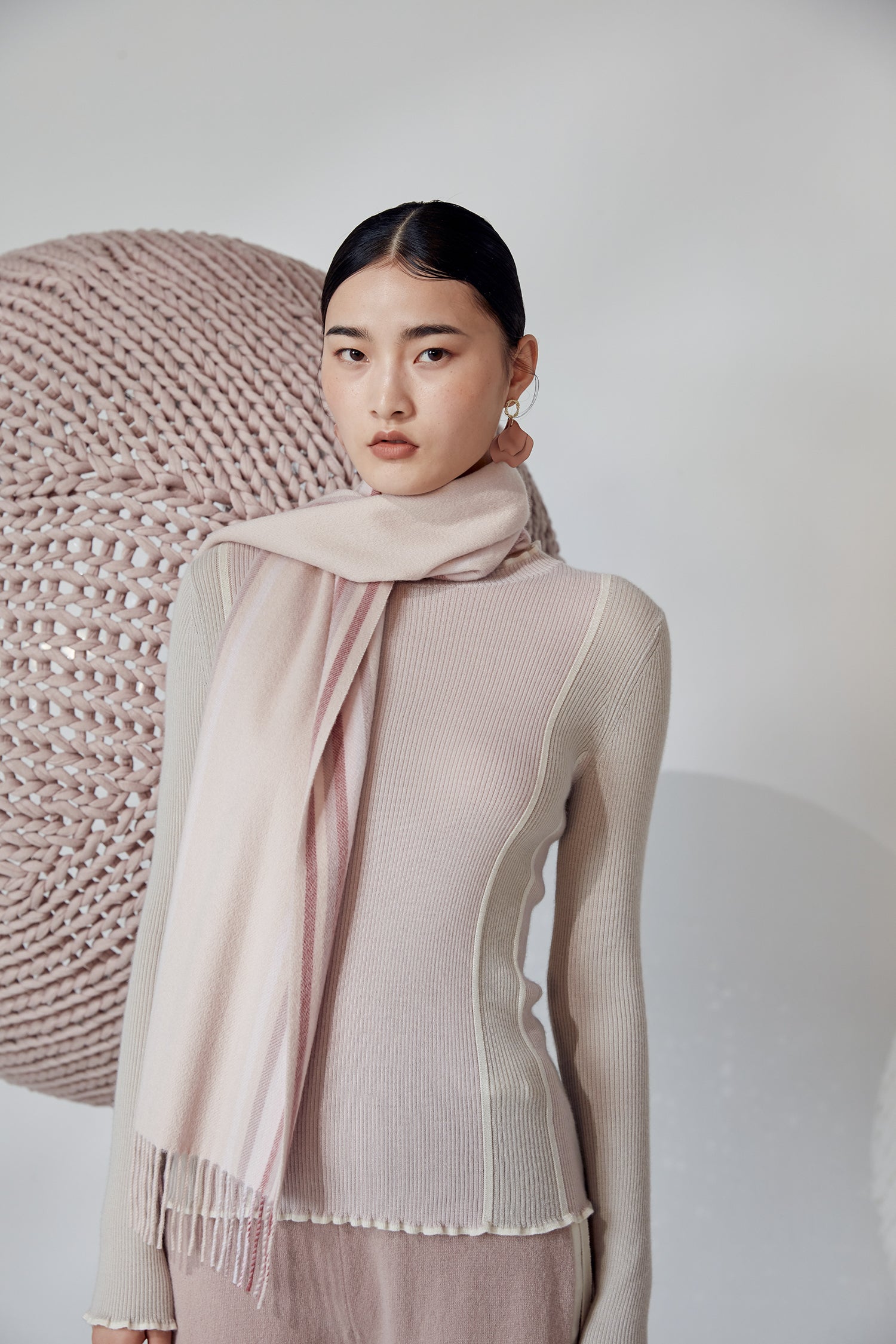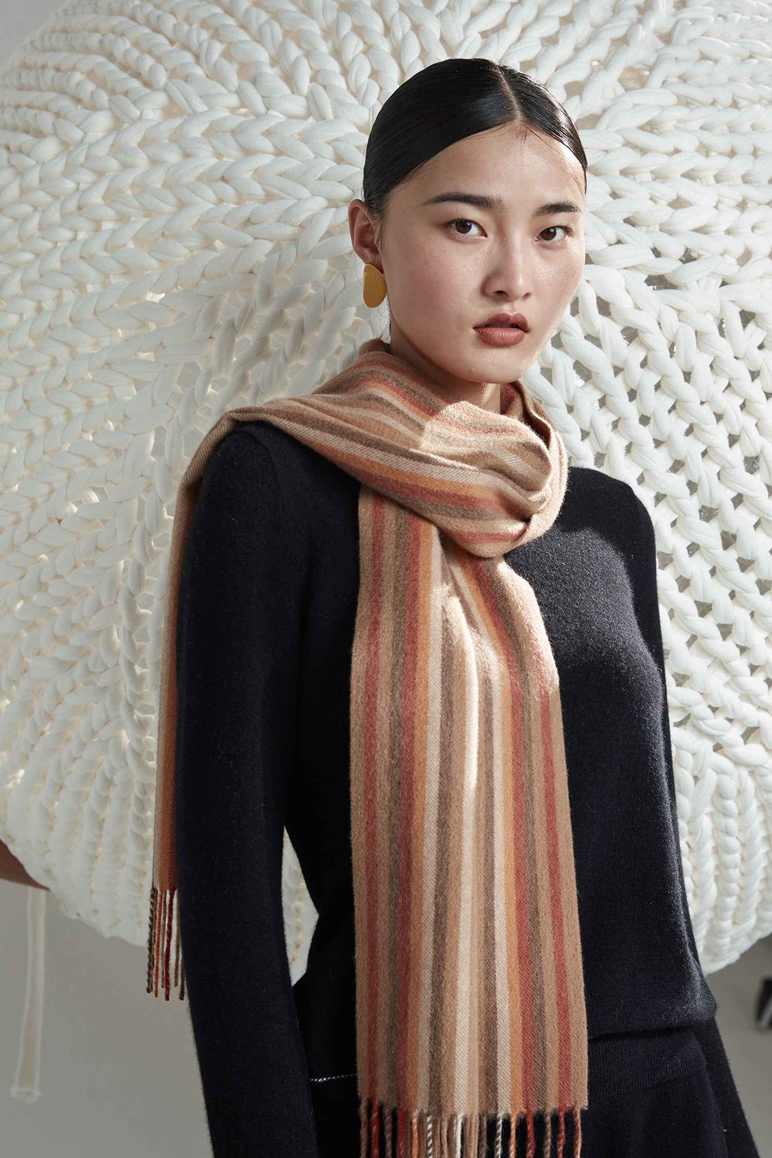 Thick contrasting color woven baby cashmere scarf detailed with hand made tassel.