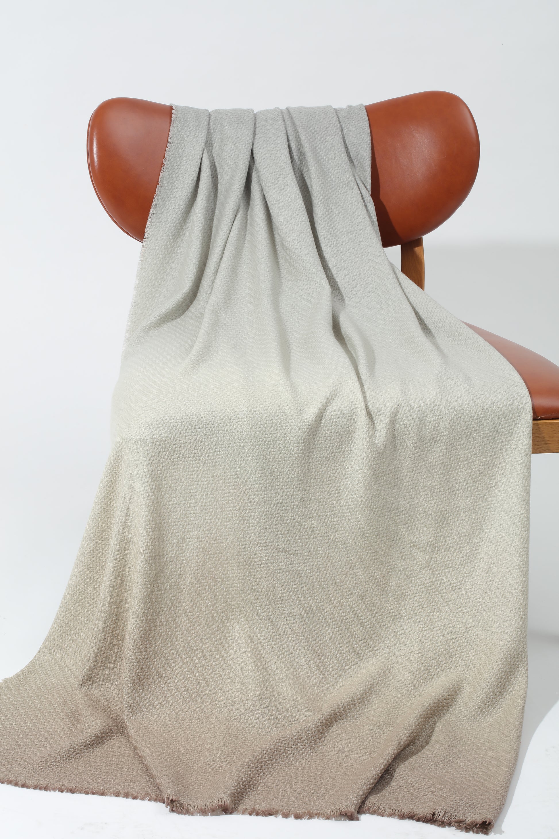 The hand-woven blanket, originating from an ancient tibet handcraft technique, 100% cashmere, dip dye design.