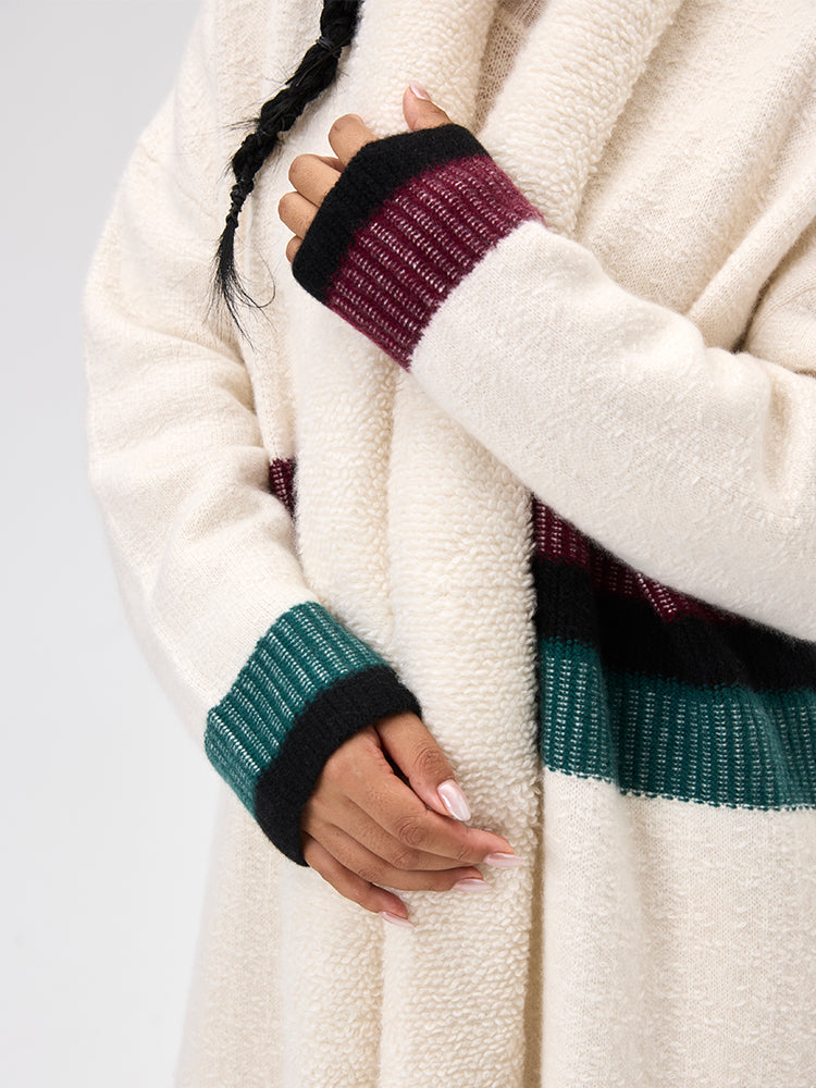 Artfully crafted with a contrast-color jacquard panel at the waist, this piece combines intricate embroidery with a deceptively simple yet meticulously crafted design. A subtle jacquard texture emerges throughout the main fabric, while the placket and cuffs feature raised towel embroidery—rich, three-dimensional, and a testament to exquisite Tibetan artistry. Fully hand-linked for a seamless, flat finish, it delivers refined warmth and exceptional detail.