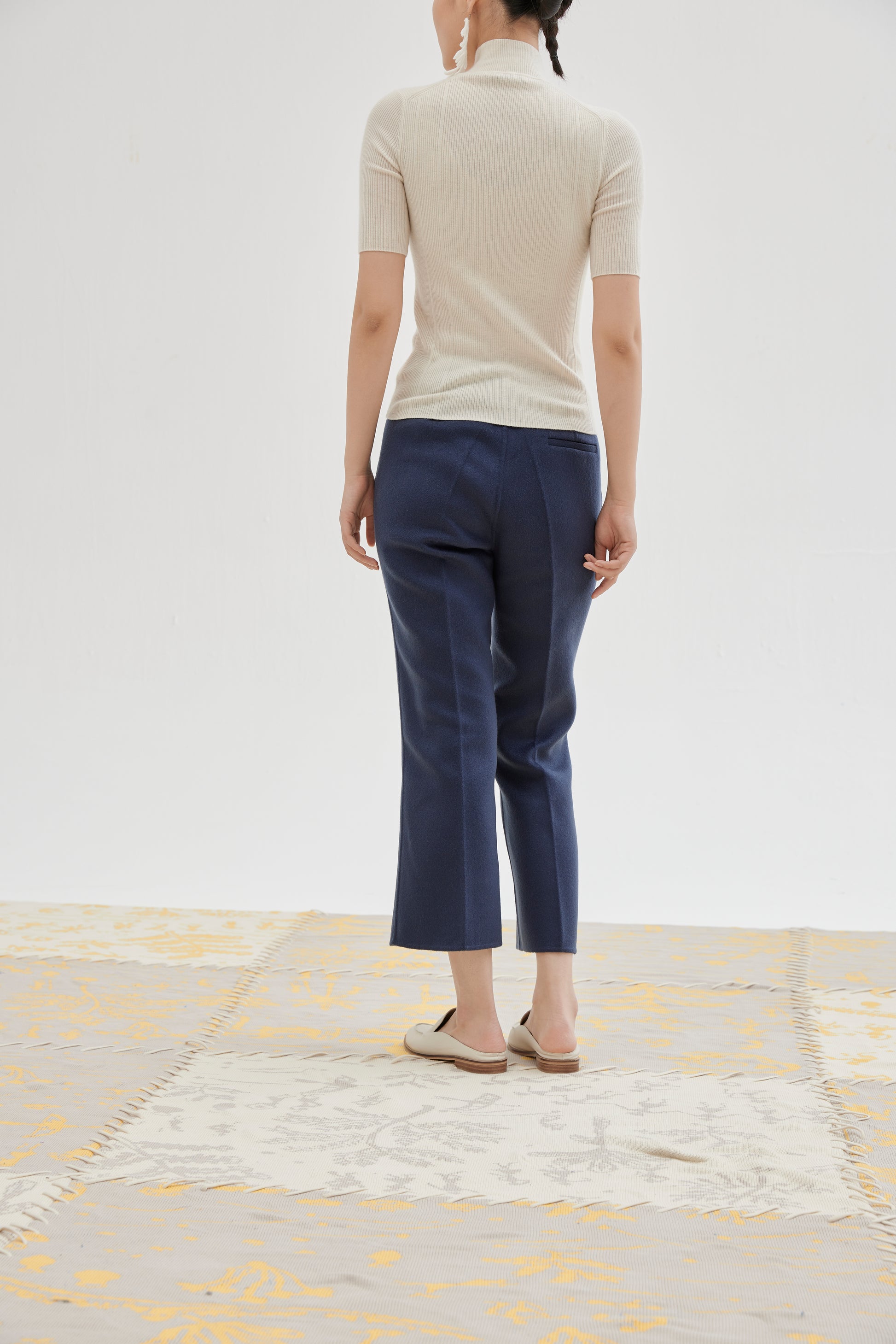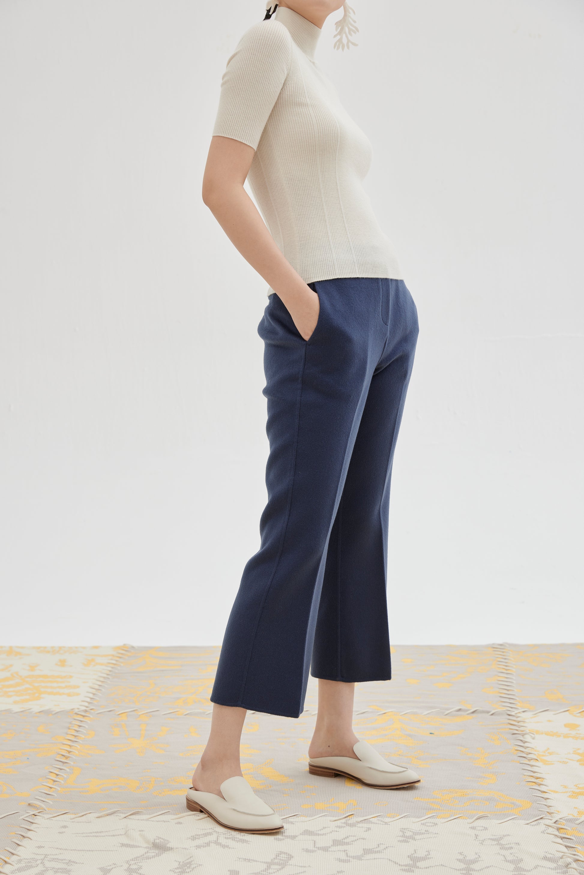 100% heavy cashmere flared trousers. Cropped cut with slant pockets.