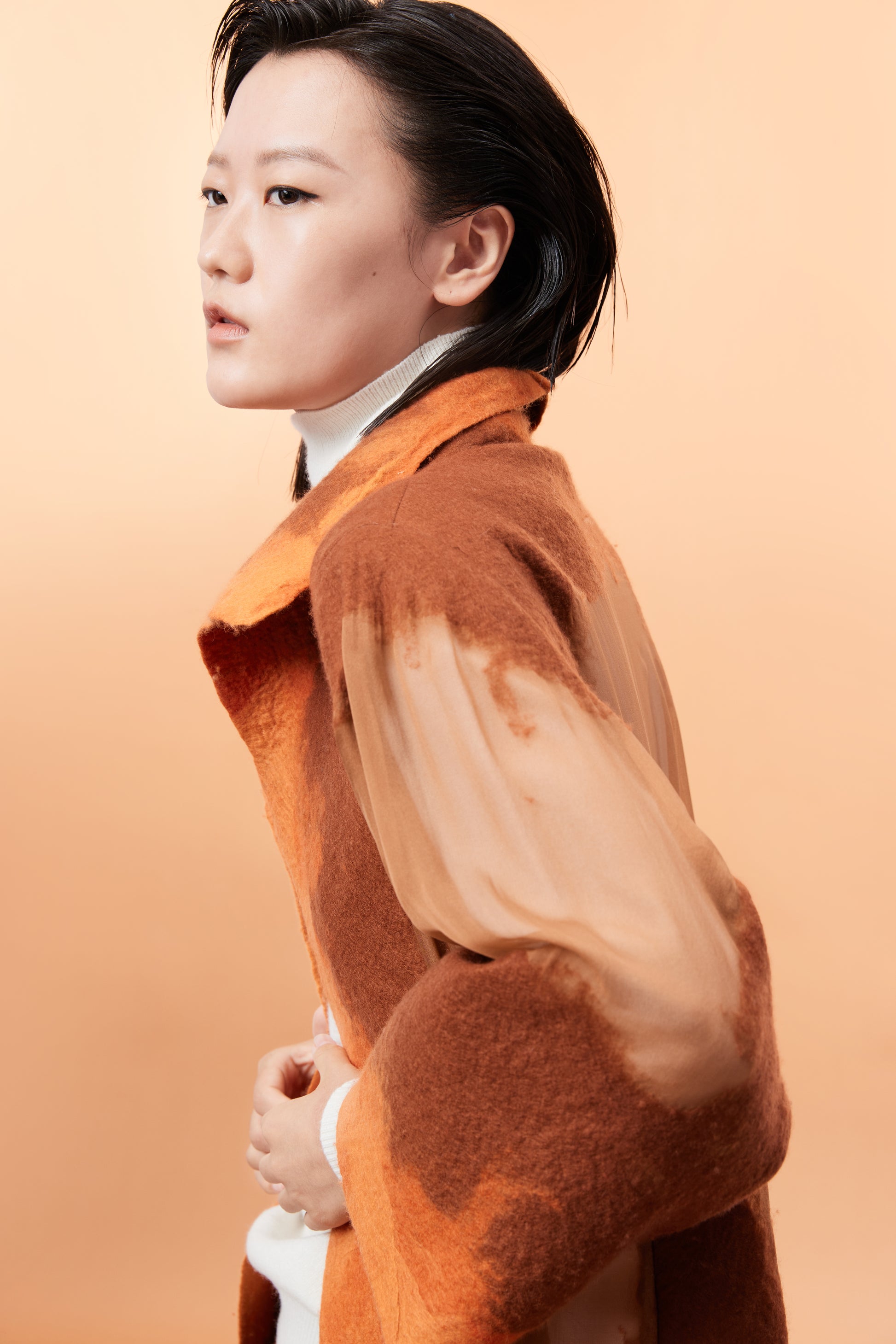 Unique handfracted felt coat joint with 100% cashmere and pure silk, an artwork by Mongolian traditional craftmanship.