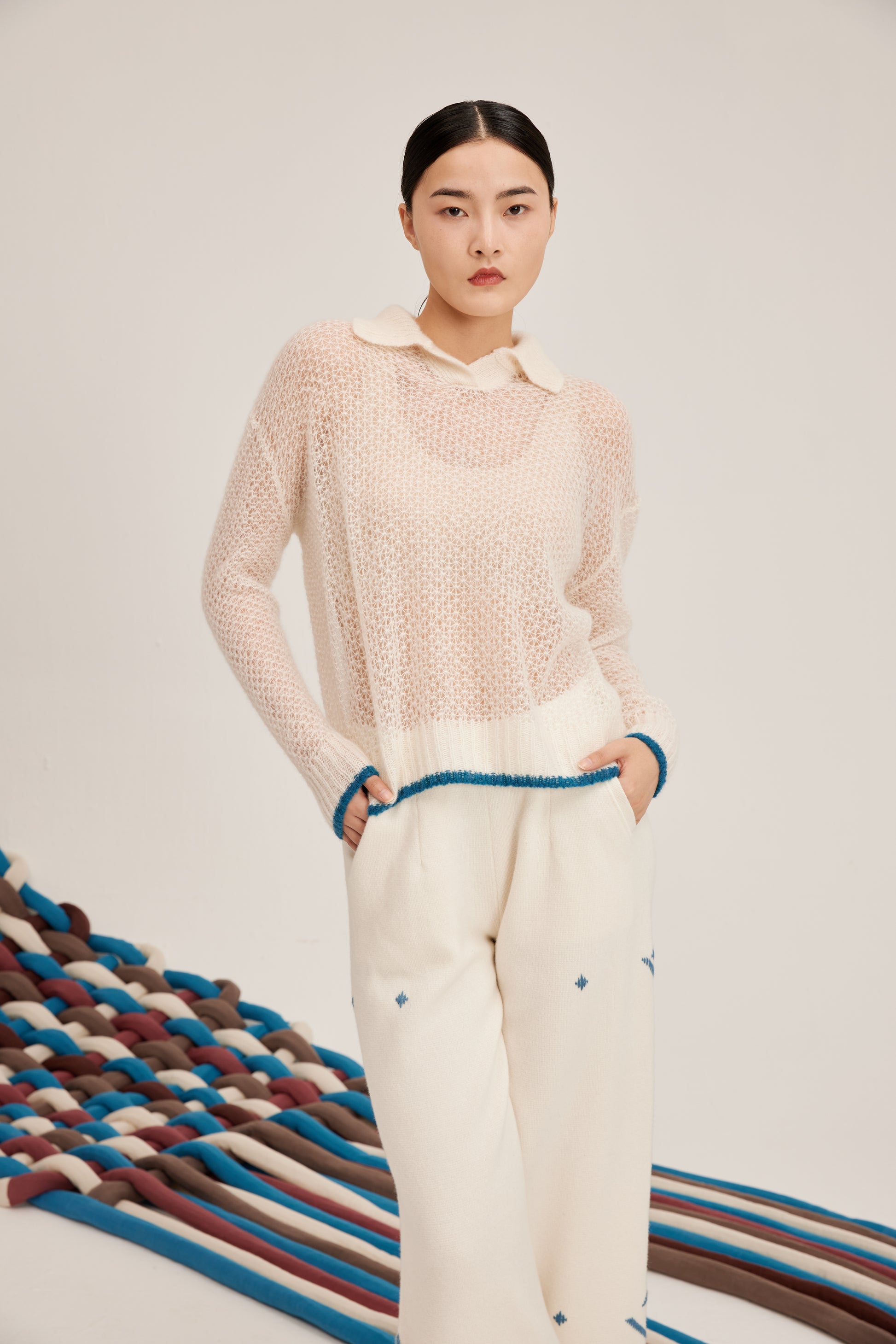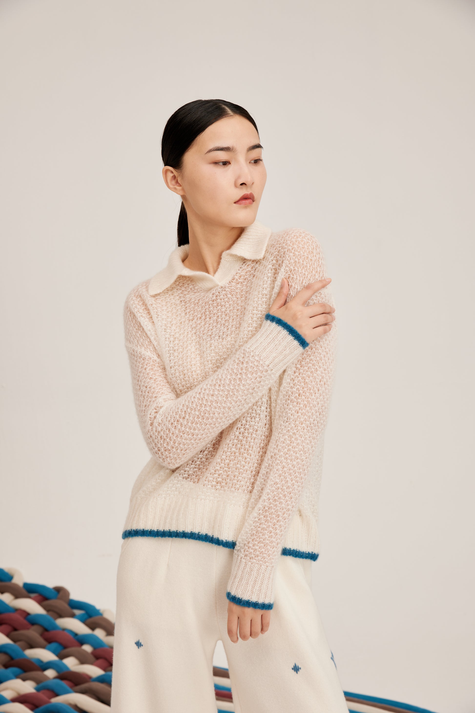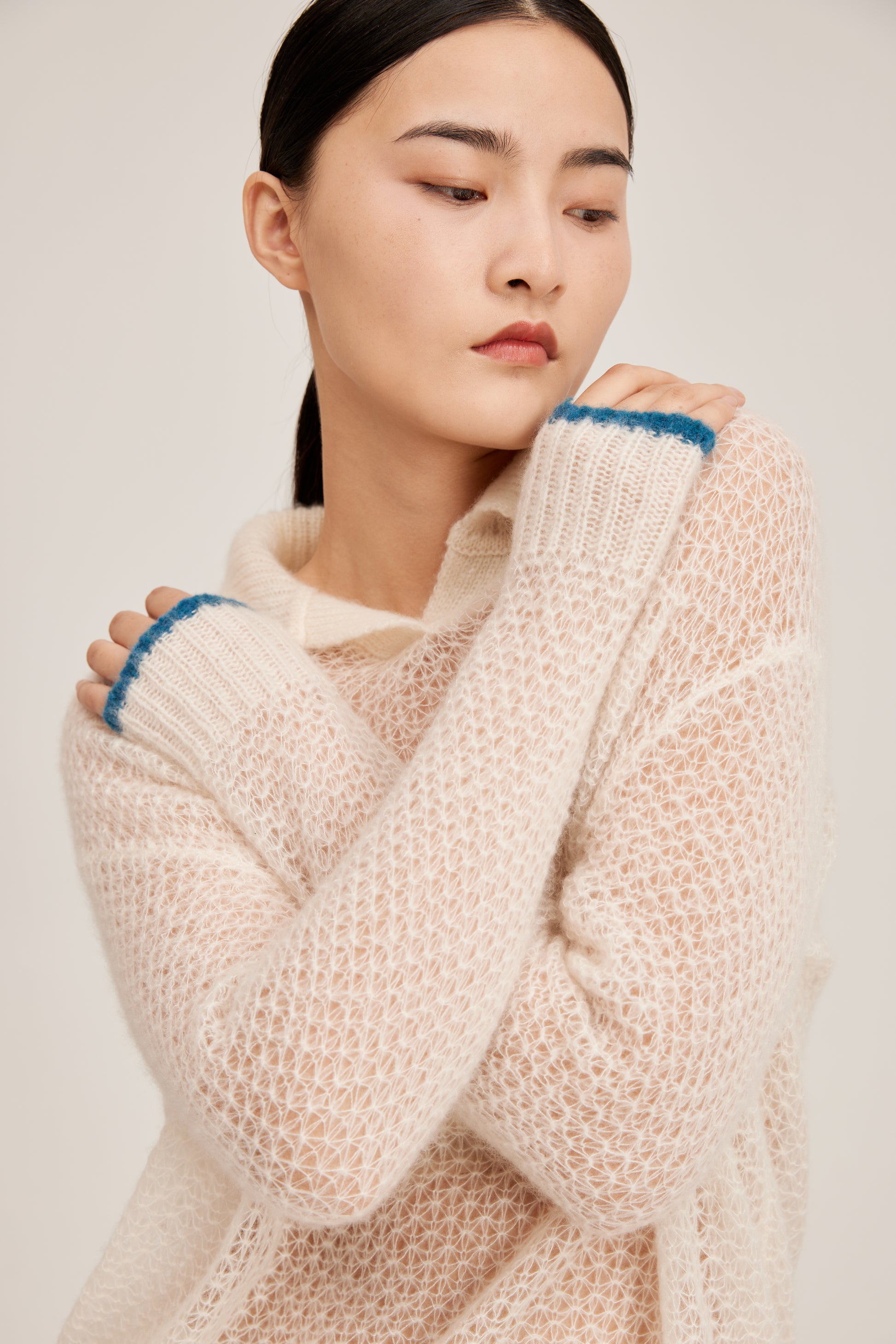 This Polo shirt is crafed from premium cashmere and silk. Loose fit, easy to wear in any occasion.