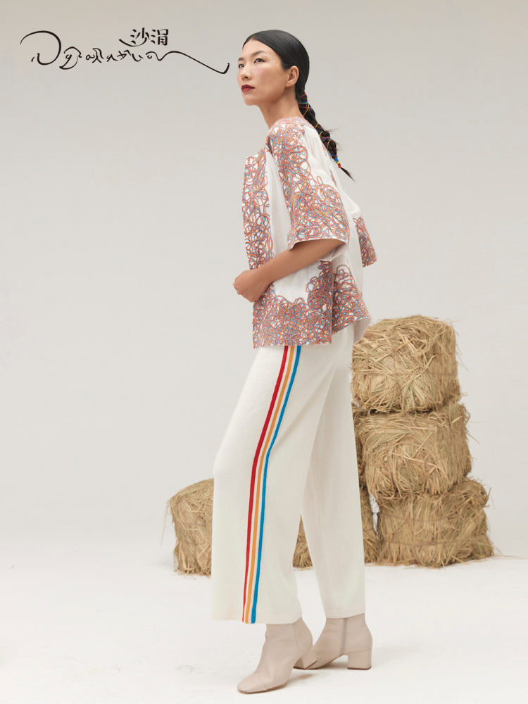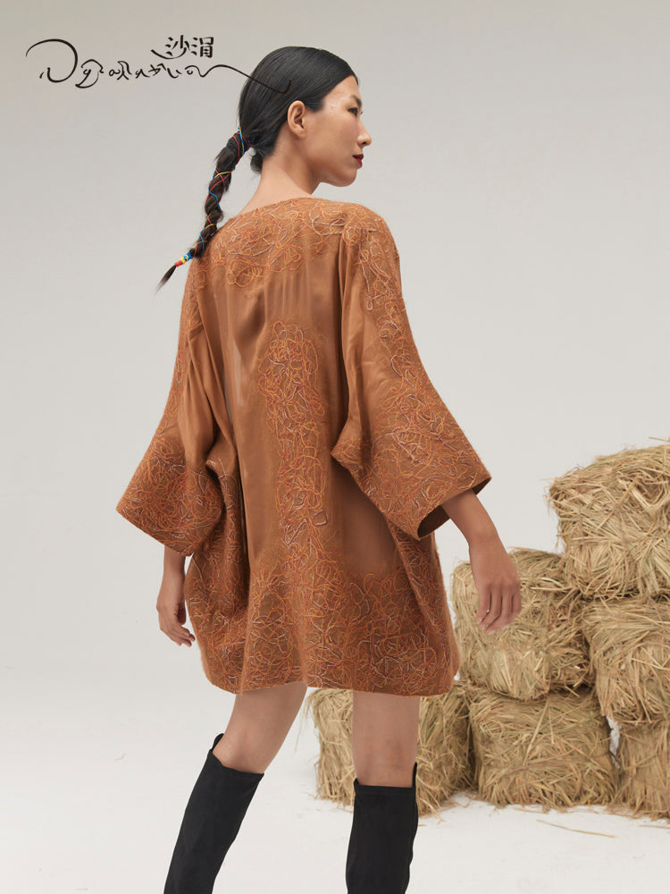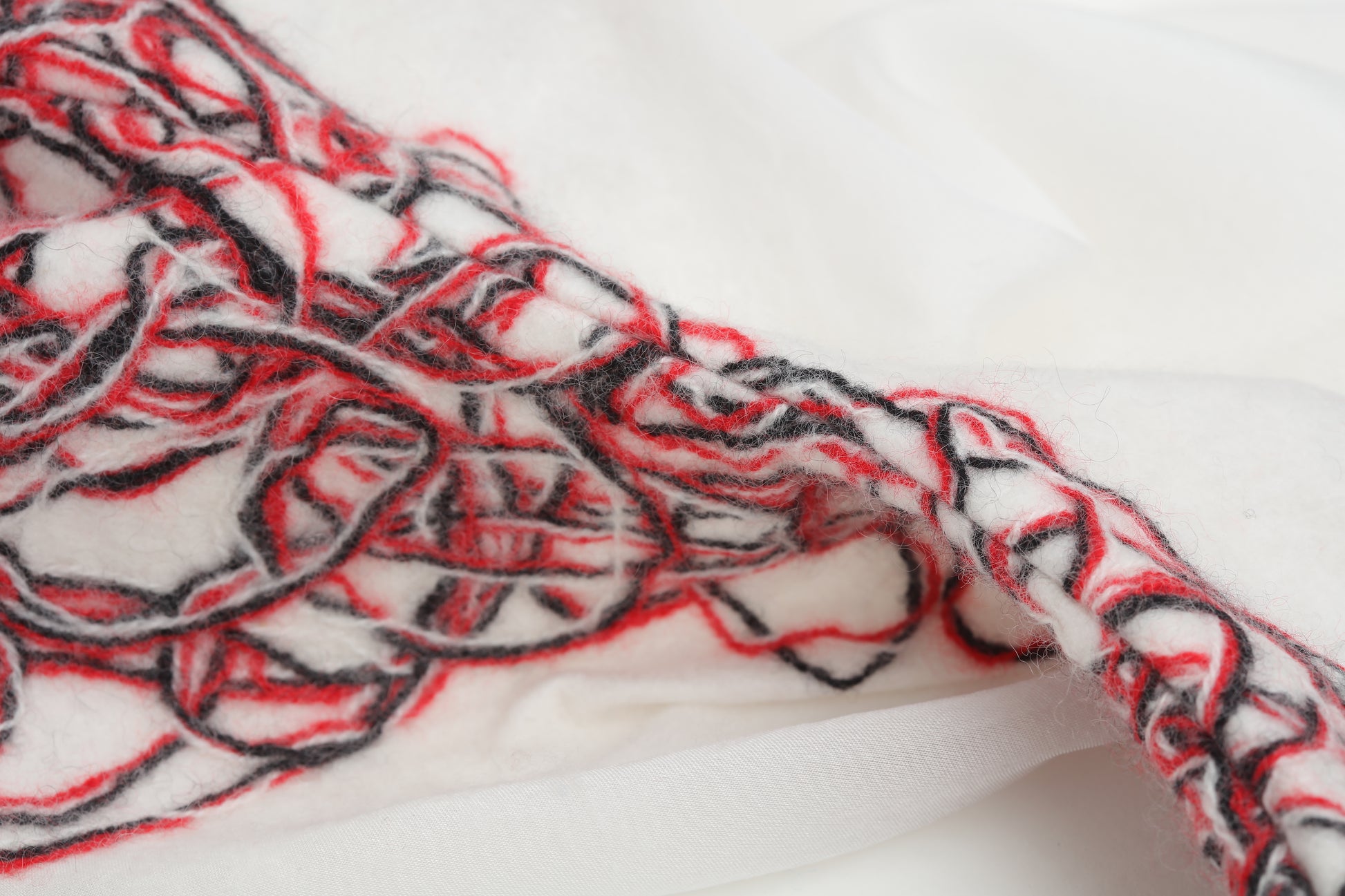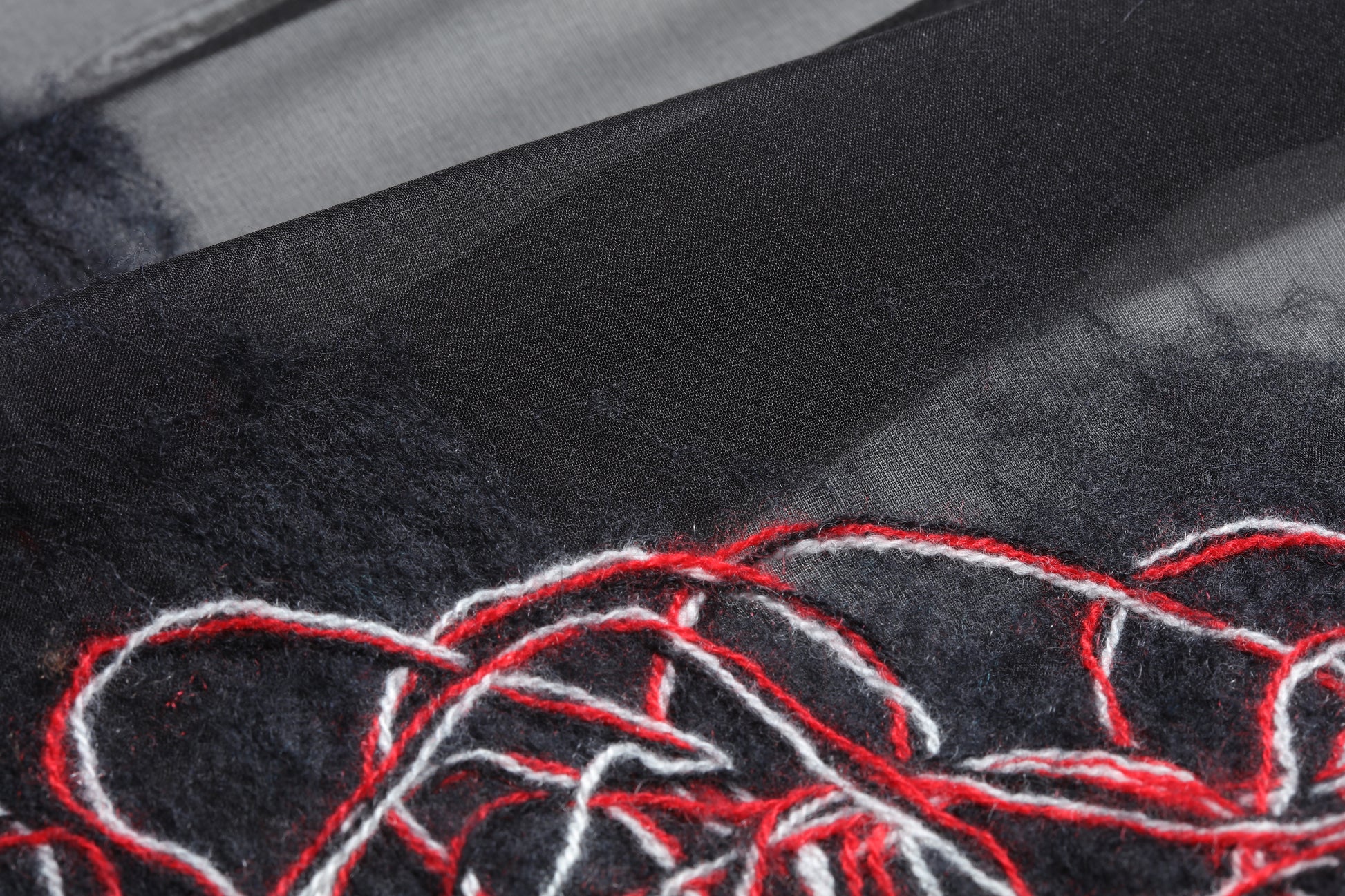 The silk as base mixed in the middle, cashmere is laid on the both sides. The fading colour makes a very artistic effect.  The cashmere fibre and silk based combination create the uniqueness.