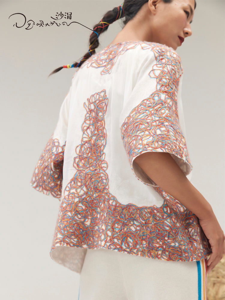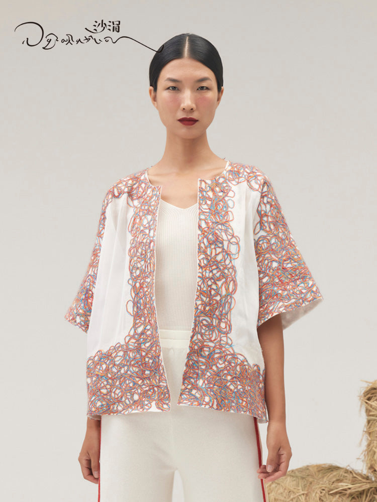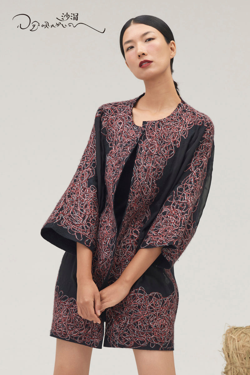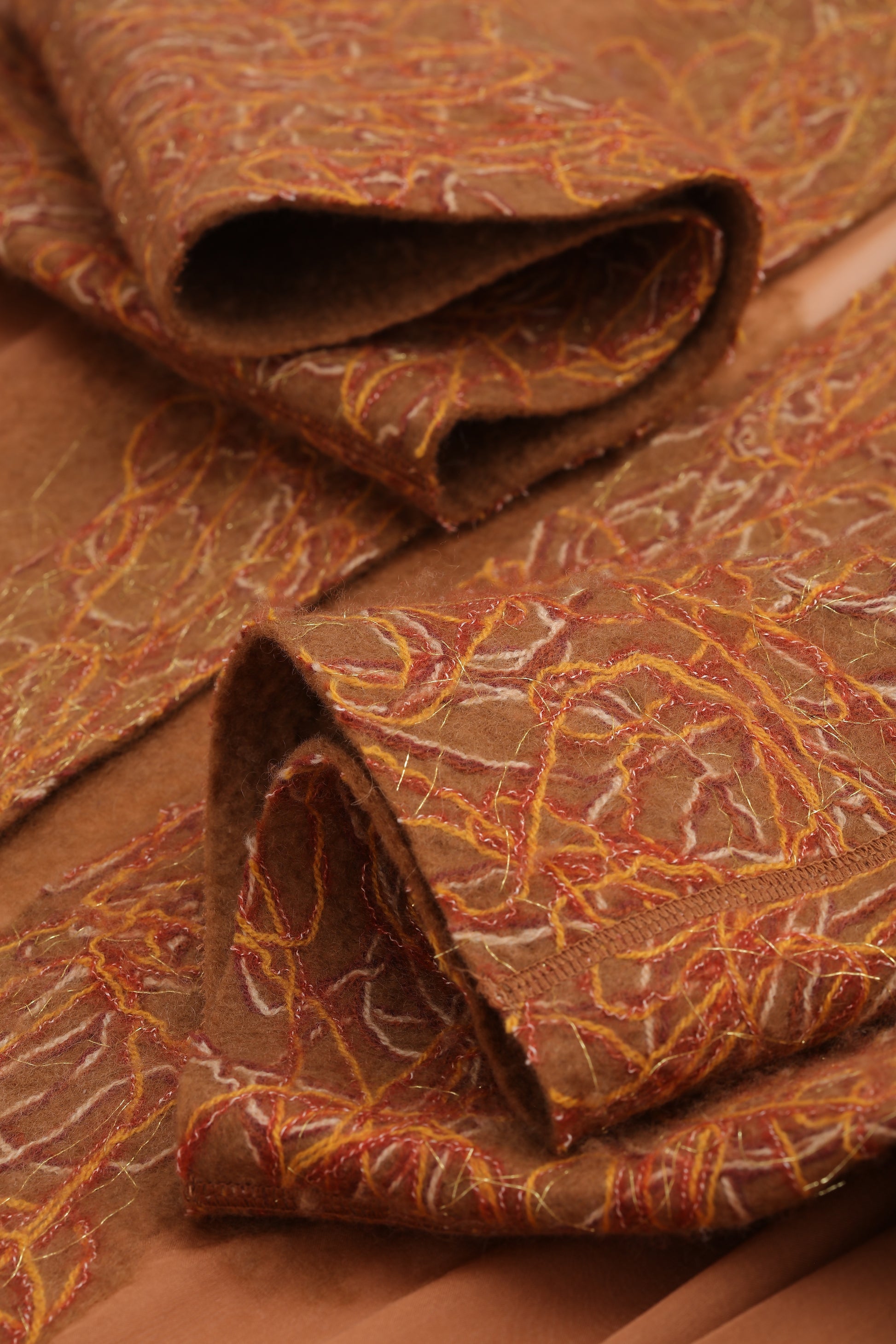 The silk as base mixed in the middle, cashmere is laid on the both sides. The fading colour makes a very artistic effect.  The cashmere fibre and silk based combination create the uniqueness.